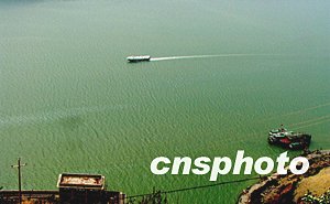 中國三峽工程已將三峽大壩水位提高到一百三十九米高程,蓄水進展順利。水位升高后,長江三峽地區水質出現重大變化,提前兩個月轉為清澈。圖為一艘快艇在清澈的重慶奉節長江段江水航行。作者:周會