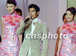 香港藝員陳煒11月8日晚出席在香港會展中心舉行的“2003中華小姐環(huán)球大賽”總決賽頒獎儀式。中新社記者:錢興強
