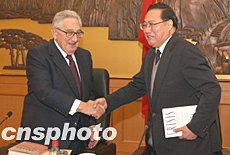 演講前,基辛格還和與會人士就國際安全問題進行了交流和討論。中國人民解放軍副總參謀長兼中國國際戰略學會會長熊光楷主持了上述活動。