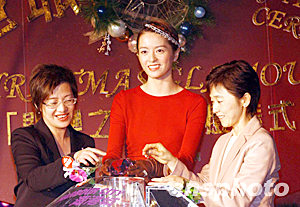 圣誕節(jié)即將到來之際,香港最大型的室內(nèi)購物商場-海港城于11月21日率先亮起圣誕燈飾,今年海港城的機(jī)動燈飾以《閃爍之城》為主題,圖為明星梁詠琪(中)與海港城置業(yè)有限公司執(zhí)行董事李玉芳(左)等啟動機(jī)動圣誕燈飾。作者:洪少葵