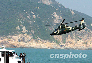 今天的演習由民航處籌辦,于南丫島東澳灣舉行,百多人參加。演習分三部分進行,包括由政府飛行服務隊和民眾安全服務處聯合在東澳灣山邊進行拯救,并由政府飛行服務隊派出超級美洲豹AS332L2型直升機示范在甲板吊救模擬傷者,消防處的潛水隊伍隨即示范海上搜救。最后,駐港部隊派出一架“直九”直升機進行空中搜索示范,結束整項短程演習。