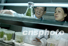 聯合國糧農組織首席顧問、中國著名雜交水稻專家袁隆平院士,十一月在湖南長沙郊外的雜交水稻研究中心實驗室研究雜交水稻,水稻畝產實現八百公斤后,提高到九百公斤是袁隆平院士的新目標。據悉,水稻畝產從六百公斤提高到八百公斤已是一個世界性的難題。中新社記者:張宇