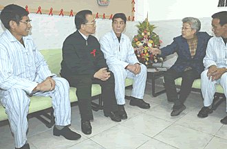 今年“世界艾滋病日”的主題是“相互關愛,共享生命”。溫家寶胸佩象征著關愛艾滋病患者的紅絲帶來到地壇醫院的“紅絲帶之家”,關切地詢問患者的治療康復、家庭生活和子女就學情況。溫家寶說,艾滋病是可防可治的,要堅定戰勝疾病的信心,全社會都在關愛你們。溫家寶叮囑醫護人員,要為患者提供好醫療、護理、健康宣傳和法律援助等人文關懷,共同營造出全社會抗擊病魔、關愛患者的良好氛圍。