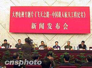 中國(guó)人民解放軍總裝備部二日在北京人民大會(huì)堂舉行新聞發(fā)布會(huì)宣布,該部組織拍攝的第一部全景式反映中國(guó)載人航天工程的大型電視專題片《飛天之路——中國(guó)載人航天工程紀(jì)實(shí)》,已經(jīng)制作完成,即將在中國(guó)中央電視臺(tái)播出。