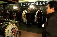 當天上午,莫斯科市立博特金醫院第二遺體告別廳哀樂低鳴。廳內擺放著中國駐俄使館、旅俄華僑華人、俄教育部、俄人民友誼大學和俄方友好人士敬獻的花圈和挽聯。前往莫斯科處理遇難同胞后事的家屬與遺體一一告別。