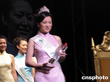 2003年度悉尼華裔小姐競選6日晚揭曉:20歲的江蘇姑娘,悉尼科技大學(xué)學(xué)生王云仙摘得華裔小姐和最上鏡小姐兩項桂冠;22歲的香港姑娘,悉尼科技大學(xué)學(xué)生林嘉琪和20歲的大連姑娘,悉尼大學(xué)學(xué)生欒諾分別獲得華裔小姐亞軍和季軍。在澳洲出生的22歲的陳慧玲被選為友誼小姐。中新社記者 劉雨生 攝影報道