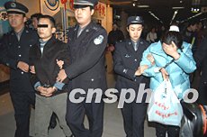 十二月八日清晨,北京東城警方將持槍入室搶劫達二十一萬元人民幣的犯罪嫌疑人蔡某(男)及同案犯押解回京。此案正在進一步審理中。中新社記者:任海霞