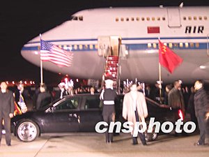 中國外交部長李肇星、國家發改委主任馬凱等主要隨行人員也同機抵達。完