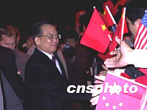 美國國務院禮賓司司長埃斯納特、安德魯空軍基地空軍準將格雷、美國國務院助理國務卿凱利到機場迎接。二百多名當地華人華僑和大使館工作人員也到機場熱烈歡迎溫家寶總理。