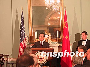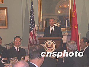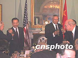 美國國務卿鮑威爾設宴款待中國國務院總理溫家寶。中新社記者 余東暉 攝