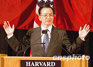 在哈福大學商學院伯頓廳所作的題為《把目光投向中國》的演講中,溫家寶說,加深理解是相互的。他希望美國青年把目光投向中國,也相信中國青年會進一步把目光投向美國。