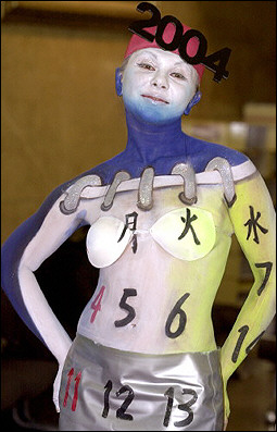 韓國漢城的一項商業活動中,模特展示新奇時尚彩繪——日歷女孩。