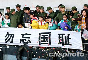從昨天起,《狂雪》詩碑在南京大屠殺遇難同胞紀(jì)念館和"和平大鐘"落成等活動(dòng)陸續(xù)舉行。有關(guān)方面介紹說:為悼念南京大屠殺三十萬同胞遇難六十六周年,南京市安排了系列活動(dòng),這些系列活動(dòng)的主題是,悼念遇難同胞,銘記歷史教訓(xùn);維護(hù)世界和平,促進(jìn)共同發(fā)展。這些活動(dòng)包括將于今晚舉行的“和平之聲——中日友好南京演唱會(huì)”和明天舉行的第二屆“南京國際青年和平論壇”。