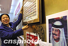 由香港著名畫家劉宇一設計的“新千年世界元首郵票大全”十九日起在北京貴友大廈獨家銷售,這組由一百九十位國家元首畫像構(gòu)成的世界張數(shù)最多的大聯(lián)張郵票售價兩千九百元人民幣并需要提前預定。其中倍受矚目的伊拉克前總統(tǒng)薩達姆頭像郵票更被放大張貼,成為這組郵票的銷售熱點。中新社記者:廖文靜