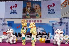 香港九廣西鐵12月20日正式通車,在錦上路站舉行啟用儀式,醒獅起舞助興為九廣西鐵通車拉開帷幕。中新社記者:洪少葵
