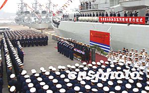 毛澤東誕辰110周年前夕,中國海軍在東海艦某驅逐艦支隊舉行“愛艦愛島愛海洋”系列教材發行儀式,。1953年2月,毛主席曾視察某驅逐艦支隊,并在該支隊“長江”、“洛陽”等艦上寫下了“我們一定要建立強大的海軍”的題詞。作者:鐘魁潤