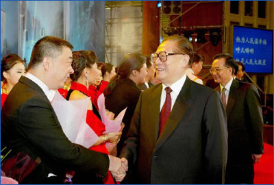 音樂會(huì)結(jié)束后,江澤民、溫家寶、曾慶紅、吳官正、李長(zhǎng)春等黨和國家領(lǐng)導(dǎo)人走上舞臺(tái),與參加演出的演員親切握手,祝賀演出成功。