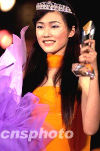 十二月二十八日晚,二十歲的北京選手劉丹在深圳世界之窗獲得二00三精英世界模特大賽中國總決賽冠軍。作者:陳文