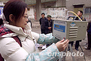 川東北氣礦“一二·二三”井噴特大事故封壓工作獲得成功后,工作人員立即進(jìn)入受災(zāi)核心區(qū),清理現(xiàn)場(chǎng)的動(dòng)物尸體,進(jìn)行登記和銷毀工作。另外,由于核心區(qū)內(nèi)的空氣及水源水質(zhì)也受到不同程度的污染,環(huán)保部門也在進(jìn)行水質(zhì)和大氣監(jiān)測(cè)。圖為環(huán)保工作人員正在對(duì)井噴事故發(fā)生地的空氣進(jìn)行檢測(cè)。作者:周舸