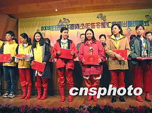 中新社長沙十二月二十九日電(殷敏鴻 鄧霞)二十九日上午,在湖南師大音樂學(xué)院演奏廳舉行了印尼華裔青少年中國民族舞蹈及中華武術(shù)冬令營匯報(bào)演出暨閉營式,伴隨著悠揚(yáng)的音樂,小營員們身著中國傳統(tǒng)民族服裝,像模像樣地向臺(tái)下的中國觀眾表演了八天來在中國學(xué)到的民族舞蹈和中國功夫,博得陣陣熱烈掌聲。