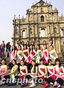 佳麗們游覽大三巴。作者:李剛