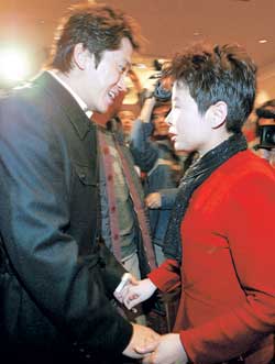 據北京娛樂信報報道,當董文華在二胡樂《十五的月亮》音樂聲中走上臺時,立即引發一陣騷亂,上百家媒體的記者一起沖向主席臺,將董文華圍得嚴嚴實實。記者發現,和從前相比,這位曾長著一張圓臉的歌唱家看上去有些消瘦而且臉上的表情多少有些不太自然。