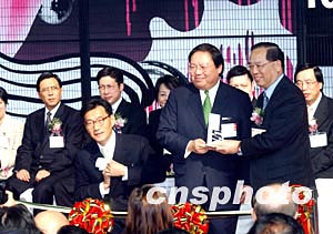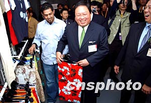 “香港時裝節秋冬系列2004及香港國際時尚薈萃2004”,1月13日至16日在會展中心舉行,圖為香港民政事務局局長何志平[中]、貿發局成衣業咨詢委員會主席鄭維志及貿發局總裁施祖祥[右]主持展覽開幕典禮。