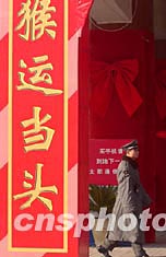 圖:北京商家打出“猴運(yùn)當(dāng)頭”賀歲標(biāo)語(yǔ)