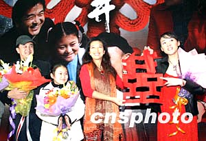一月十五日,一部由黃宏(左一)、江珊(右二)等主演的溫情喜劇故事片《陽光天井》在北京舉行首映禮,這是喜劇明星黃宏繼《25個孩子一個爹》后執導的又一部力作。中新社記者:張勤