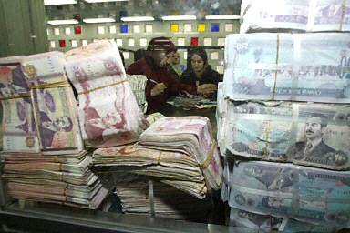 位于巴格達的伊拉克中央銀行里堆放著成捆的舊貨幣
