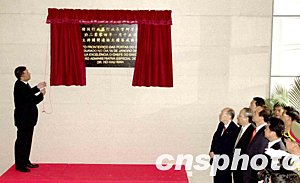 澳門特區(qū)行政長官何厚鏵為邊檢新大樓落成揭牌。作者:李剛