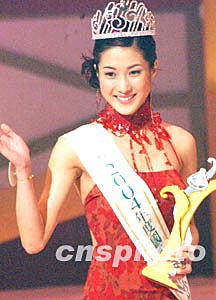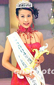 應(yīng)屆港姐曹敏莉一月十七日晚在香港舉行的2004年度國際華裔小姐競(jìng)選決賽上獲得亞軍。作者:錢興強(qiáng)