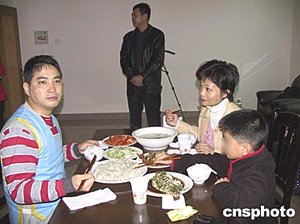 因涉嫌在海南從事間諜活動被拘押的臺灣人宋孝濂,一月二十日在有關部門的安排下與前來探視的妻子和兒子吃團圓年飯。作者:王辛莉