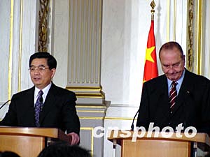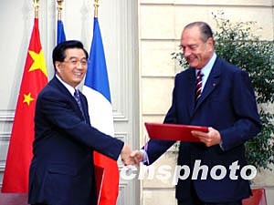 組圖:胡錦濤和希拉克簽署“中法聯合聲明”