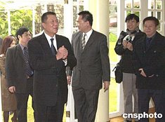 何厚鏵在午宴前和媒體的老總們交談甚歡。