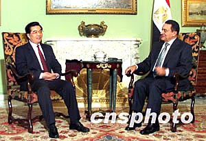 圖:胡錦濤與埃及總統(tǒng)穆巴拉克舉行會談 (2004-01-30 07:03:33)