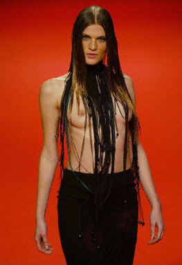 相關(guān)報(bào)道:多圖:巴塞羅納時(shí)裝周 模特展示性感露點(diǎn)裝 (2004-02-04 14:55:29)