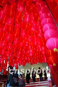 香港最大型的室內購物中心──海港城,高掛大紅燈籠歡度“元宵節”,成為城中亮麗的景觀。作者:洪少葵