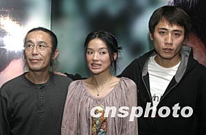圖為影片主創人員:導演呂樂、女主角舒淇、男主角劉燁(從左至右)。