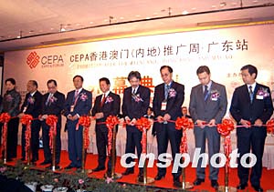 CEPA香港澳門(內(nèi)地)推廣周·廣東站十一日在廣州中國大酒店隆重揭幕,來自粵港澳三地經(jīng)貿(mào)界和政界的嘉賓五百多人出席了開幕式。作者:梁永強
