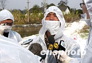 中新社隆安二月十二日電 (記者 趙勝玉)“戴鞋套、穿隔離服、戴手套”,由國務(wù)院新聞辦組織的中外記者團今天首次獲準(zhǔn)進入中國內(nèi)地發(fā)現(xiàn)第一例禽流感的疫點——廣西隆安縣丁當(dāng)鎮(zhèn)丁當(dāng)電灌站采訪。