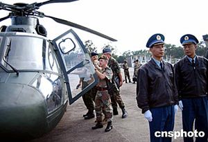 上午十一時三十分,以英國駐華武官科爾準將為團長的武官團乘坐一架解放軍空軍專機抵達香港國際機場,受到廣州軍區、國防部、香港駐軍、香港特區政府有關負責人的熱情迎接。