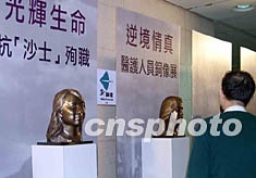 圖:香港抗SARS殉職的醫護人員銅像展出