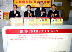 中國銀行(香港)有限公司2月24日舉行“個人人民幣服務啟動儀式”,總裁和廣北(左二)、副總裁林炎南(右二)等主持啟動儀式。作者:洪少葵