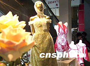 隨著婚慶商品的多元化,出現了專門配婚紗穿著的內衣,2月25日,一家參展商在上海婚紗展中展出了專為穿著婚紗設計的婚紗內衣,很受女性的歡迎。中新社傳真 井韋 攝