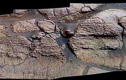 美國宇航局展示機(jī)遇號拍攝的火星照片,稱有證據(jù)表明火星上曾被水淹沒。