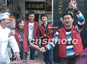 三月九日,以“鴛鴦蝴蝶夢(mèng)”走紅的臺(tái)灣娛樂界名人黃安在福州澳門路與百年老鋪“同利肉燕店”陳君凡先生一起表演打燕皮的絕活,令在場觀眾樂翻了天。黃安此行是應(yīng)福建東南電視臺(tái)之邀錄制娛樂節(jié)目的。作者:鄭祚聲
