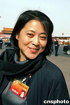 三月十二日,全國政協(xié)委員、央視名主播倪萍參加全國政協(xié)十屆二次會議閉幕式。作者:慎重