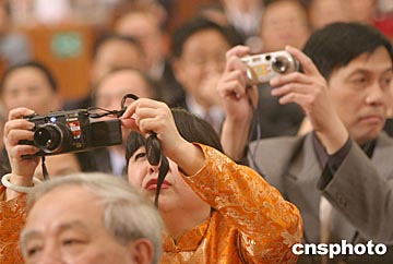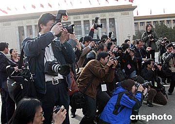 全國政協十屆二次會議十二日在北京人民大會堂閉幕,采訪大會的記者在會場外抓拍的陣勢頗為壯觀。中新社記者:滿會喬