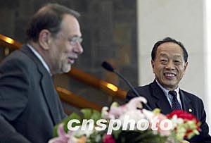 關(guān)于歐盟解除對華武器禁運問題,索拉納說,多年來,歐中關(guān)系并沒有受到禁運的影響,歐盟目前正在盡力尋找符合雙方價值觀和立場的方式,來解決這一問題。李肇星表示,對華武器禁運是冷戰(zhàn)時代的產(chǎn)物,而現(xiàn)在世界正處在以“和平”與“發(fā)展”為主題的時代。
